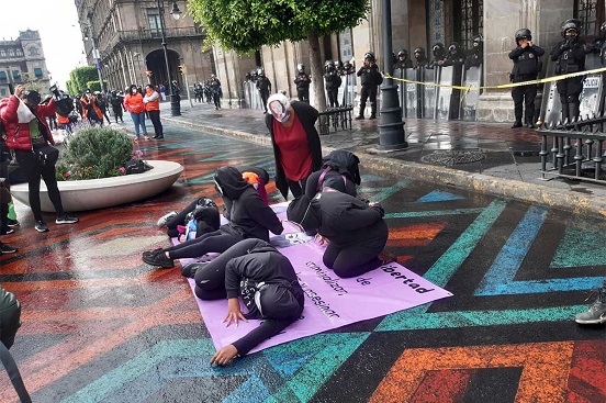 Se trata de 25 mujeres que se reunieron frente al edificio del Gobierno de la Ciudad de México para exigir la libertad de dos de sus compañeras que fueron encarceladas hace 4 meses, durante el desalojo del edificio de la Comisión Nacional de Derechos Humanos, ubicado en la calle República de Cuba perímetro de la alcaldía Cuauhtémoc.