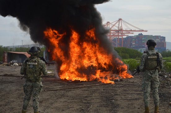 El producto incinerado, fue asegurado en el mes de abril del presente año en alta mar, aproximadamente a 270 millas náuticas (500 kilómetros) de Manzanillo, Colima, tras la intercepción de una embarcación.