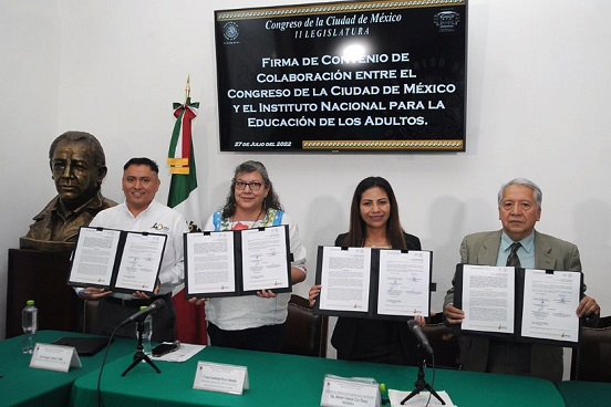 Destacó que el objetivo de este convenio es contar con el apoyo del Congreso local para impulsar el Movimiento Nacional por la Alfabetización y la Educación, así como la estrategia educativa AprendeINEA, siendo los Módulos Legislativos espacios idóneos para favorecer la educación.