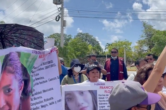 “¿Cuál paz? Sí Cancún es un infierno de los desaparecidos, ¿Cuándo nos vas atender? Ven a abrazarme y busca a las niñas… Queremos que abraces a las madres de las desaparecidas”, fueron algunas de las consignas que gritaron las madres de mujeres desaparecidas, pero unos minutos después, el presidente López Obrador se acercó al grupo de mujeres que protestaba.