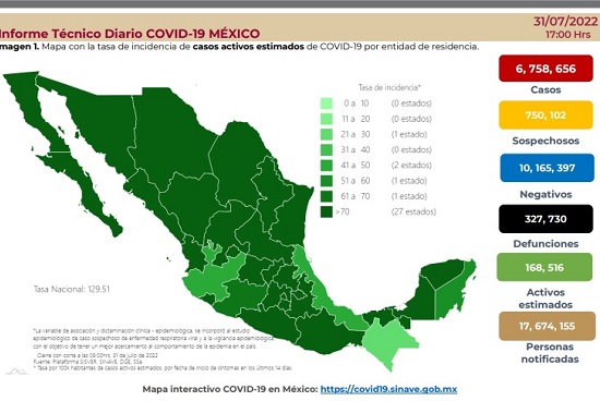 Hasta ahora han fallecido 327 mil 730 personas a causa de esta enfermedad y de ellas, 17 fueron reportadas en las últimas 24 horas.
