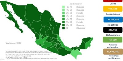 Ssa reporta 2 mil 961 nuevos casos Covid-19 y 20 defunciones en 24 horas