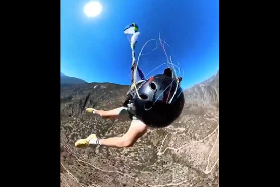 El salto de un paracaidista estuvo cerca de terminar en tragedia, luego de que su equipo se enredó en plena caída al aire libre.