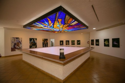 Dentro de la casa, abundó, se encuentra “El hombre universal”, un vitral de veinte metros cuadrados creado por Lepoldo Flores en 1982. Está colocado como bóveda en la parte superior del inmueble y puede observarse desde la planta baja.