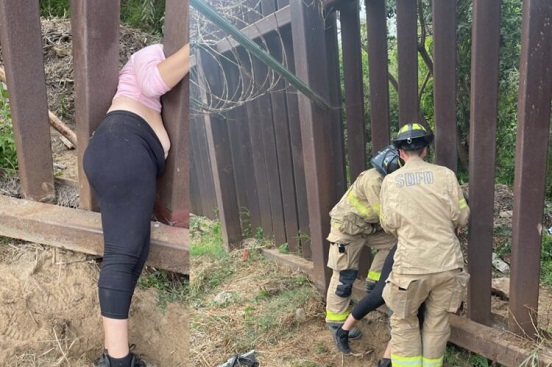 Los gentes asignados a la zona fronteriza del sector de San Diego recibieron una llamada de auxilio y rescataron a una mujer migrante que los traficantes de personas abandonaron después de quedar atrapada entre dos colllumnas de acero del muro fronterizo que divide Tijuana con la ciudad de San Diego, California.