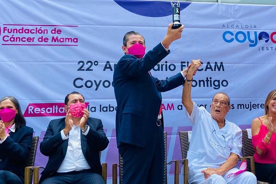 El alcalde de Coyoacán, Giovani Gutiérrez junto con el fundador y presidente vitalicio de la Fundación de Cáncer de Mama A.C. (FUCAM), el Doctor Fernando Guisa Hohenstein, llevaron a cabo la conmemoración del 22 aniversario de esta institución.