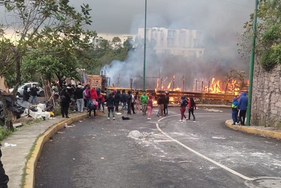 Tras el desalojo, los afectados realizaron un bloqueo en ambos sentidos de la Avenida Vasco de Quiroga, a la altura de la Glorieta del Cilantro.