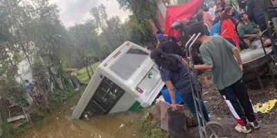 Captan momento en que microbús choca puesto ambulante y cae a canal en Xochimilco