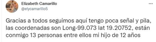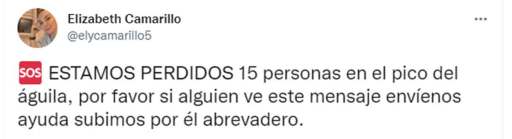 Eran las 5 de la tarde del 14 de agosto y en redes sociales, Elizabeth Camarillo, lanzó un mensaje de auxilio al quedar atrapada junto a un grupo de 15 personas en el Pico del Águila en el Ajusco.