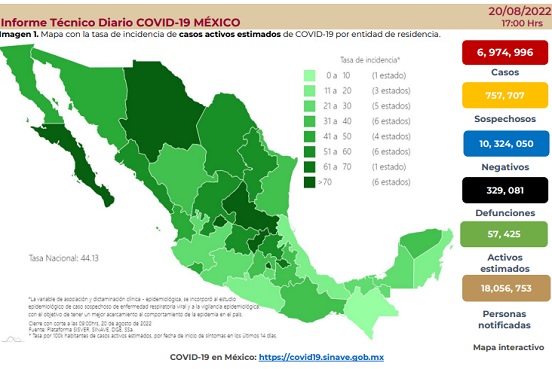 En cuanto a los muertos se registraron 69 y con ello ya suman un total de 329 mil 81 fallecidos desde marzo del 2020.