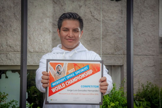 Jorge Luis González Hernández, estudiante de la carrera de Ingeniería Química de la Facultad de Química de la Universidad Autónoma del Estado de México (UAEMéx), ganó el sexto lugar mundial, en la categoría Excel 2019, en el Microsoft Office Specialist World Championship que se realizó en Anaheim, California, del 24 al 27 de julio.