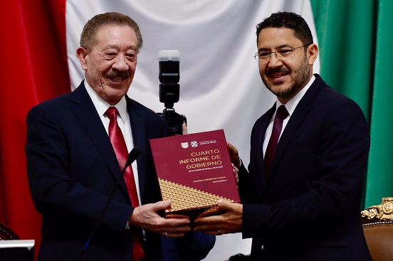 En representación de la Jefa de Gobierno, Claudia Sheinbaum Pardo, y en cumplimiento al artículo 32, apartado C, numeral 3, de la Constitución Política de la Ciudad de México, el secretario de Gobierno de la Ciudad de México, Martí Batres Guadarrama, entregó para su recepción y análisis al Congreso capitalino el Cuarto Informe de Gobierno de la Ciudad de México 2021-2022