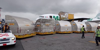 Autoridades federales reciben en el AICM 1.2 millones de dosis de vacunas Pfizer pediátricas del mecanismo Covax