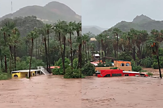 En la comunidad asentada a lo largo del rio Mulegé, muchas casas están a punto de ser cubiertas por el nivel del agua. Lamentablemente la situación se agrava, pues continuará lloviendo al menos durante este viernes y sábado.