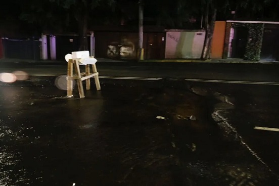 Una fuga de agua provocó un socavón de al menos dos metros de diámetro en la Calzada Las Águilas de la alcaldía Álvaro Obregón, donde un taxi quedó atrapado en el hoyo.