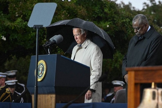 «Nunca olvidaremos, nunca nos rendiremos”, dijo Biden en la sede del Pentágono, donde un avión tomado por los terroristas aquel día se estrelló contra el complejo en Washington.