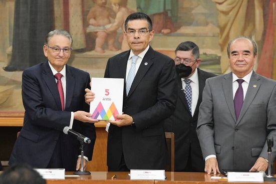 Con tolerancia, concertación y colaboración entre los poderes públicos, se propicia la gobernabilidad que es condición indispensable para la estabilidad y la paz social, expuso Luis Felipe Puente Espinosa, Secretario General de Gobierno, quien atendiendo las instrucciones del Gobernador del Estado de México, Alfredo Del Mazo Maza, entregó por escrito el Quinto Informe de Resultados, mediante el cual se da cuenta del estado que guarda la administración pública estatal, a los integrantes de la Junta de Coordinación Política (Jucopo) de la LXI Legislatura mexiquense.