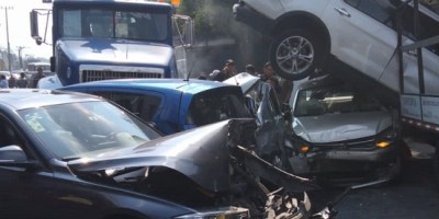 Fuerte accidente en Santa Fe; varios heridos por tráiler que impactó a 5 vehículos