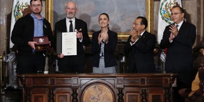 Sheinbaum entrega las Llaves de la Ciudad a familia de Julian Assange