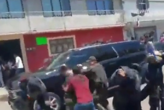 “¡Agárrenla, agárrenla!”, comenzaron a llamar los pobladores, mientras los funcionarios públicos apretaban el paso rumbo a los vehículos en los que llegaron.