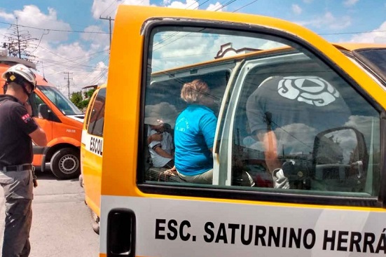 Una colisión entre un camión de transporte escolar y un vehículo particular dejó un saldo de 17 menores lesionados, en Apodaca, Nuevo León.