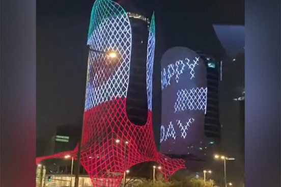De tal forma que iluminaron con los colores verde, blanco y rojo algunos edificios ubicados en la zona de Lusail, en Doha.