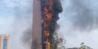 Un incendio arrasa un rascacielos en el sur de China