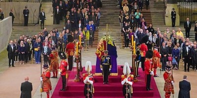 Rey Carlos encabeza junto a sus hermanos guardia en féretro de Isabel II