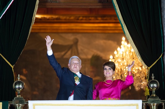 Ante miles de personas que se reunieron en el Zócalo para conmemorar las fiestas patrias, el mandatario ondeó en el balcón principal de Palacio Nacional la bandera tricolor que recibió de la escolta de cadetes del Heroico Colegio Militar, en su calidad de comandante supremo de las Fuerzas Armadas.