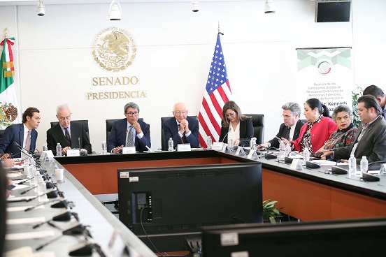 Al encuentro asistieron integrantes de las comisiones de Relaciones Exteriores y de Relaciones Exteriores América del Norte, que presiden el senador Héctor Vasconcelos y la senadora Gina Andrea Cruz Blackledge, respectivamente.