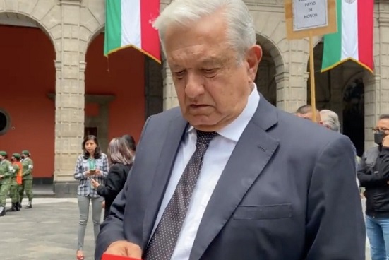 Desde el patio de Palacio Nacional, López Obrador dio un breve mensaje luego del sismo ocurrido a las 13:05 horas y el cual activó nuevamente la alerta sísmica en la Ciudad de México, la cual había sonado a las 12:19 horas debido al simulacro nacional de este año.