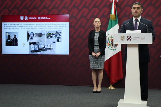 “Las cuatro personas detenidas pertenecen a una célula delictiva dedicada al trasiego, almacenamiento, venta y distribución de drogas aquí en la Ciudad de México y hacia los Estados Unidos y otros estados del país, logrando asegurar 345 kilogramos de cocaína, seis vehículos, cuatro de ellos con compartimentos ocultos, 28 mil dólares americanos, un arma de fuego larga y diversos equipos telefónicos”, explicó el secretario de seguridad.