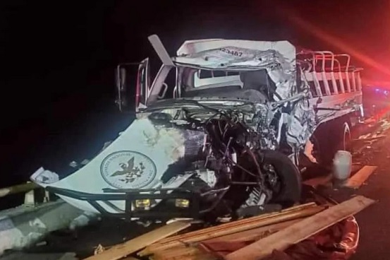 Los elementos de la Guardia Nacional resultaron heridos después de que el vehículo que los transportaba quedara totalmente destruido de la parte frontal.