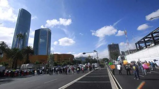 Vecinos y comerciantes de la colonia Xoco en la alcaldía Benito Juárez bloquearon la avenida Universidad, en el entronque con avenida Coyoacán, en protesta por la inauguración del Centro Comercial Mítikah este viernes.