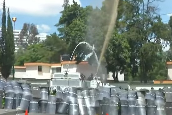 Al interior de la instalación militar se formó un grupo de elementos de la Secretaría de Seguridad Ciudadana (SSC) de la Ciudad de México, protegidos con escudos, para impedir el ingreso de los encapuchados, quienes se mantuvieron sobre la Avenida Conscripto.
