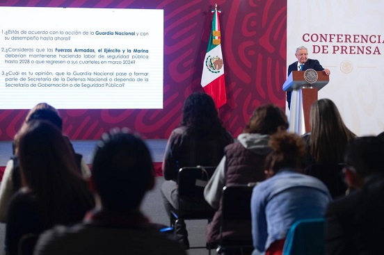 - ¿Consideras que las Fuerzas Armadas (El Ejército y la Marina) deberían mantenerse haciendo labor de seguridad pública hasta 2028 o que regresen a sus cuarteles en marzo de 2024?
