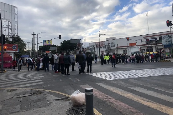Los manifestantes procedentes de la colonia Barrio San San Miguel exigen a las autoridades que retiren el comercio irregular en la avenida Luis Hidalgo Monroy, al considerar que ponen en riesgo su seguridad al entorpecer la circulación en banquetas y en la vía luego de los recientes sismos.