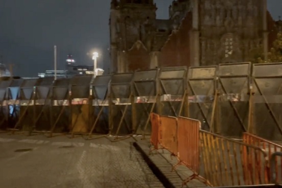 Las vallas metálicas que ayer se utilizaron para el concierto del Grupo Firme esta mañana se utilizan para resguardar al Palacio Nacional previo a la marcha por el octavo aniversario de la desaparición de los 43 estudiantes de Ayotzinapa.