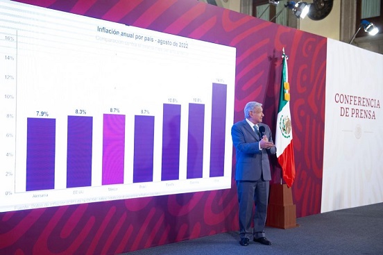 “Estamos atendiendo el problema de la inflación, es un fenómeno mundial originado por la guerra de Rusia en Ucrania; ya venía mal la economía del modelo neoliberal y se afectó más con la pandemia”, añadió.