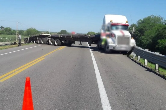 Aparatoso choque vehicular entre un tractocamión y un vehículo compacto se registró sobre la carretera González-Zaragoza. El accidente ocurrió a la altura del kilómetro 21, dónde quedaron los vehículos colisionados obstaculizando el tráfico vehicular.