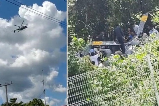 Videos captados por usuarios de redes sociales, cuya autenticidad confirmó la fiscalía, muestran el momento en el que el helicóptero pierde su trayectoria, comienza a dar vueltas en el aire y se desploma.
