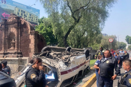 Una unidad de transporte público del Estado de México volcó en la avenida Insurgentes Norte, de la alcaldía Gustavo A. Madero; hay 14 lesionados.