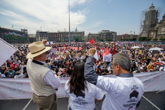 Detrás de ellos, se sumaron algunos de los padres de los 43 estudiantes de Ayotzinapa desaparecidos en 2014 en Iguala, Guerrro, así como normalistas de diversos estados y alumnos de la UNAM, del IPN, e integrantes de colectivos y de organizaciones defensoras de derechos humanos y agrupaciones de trabajadores.