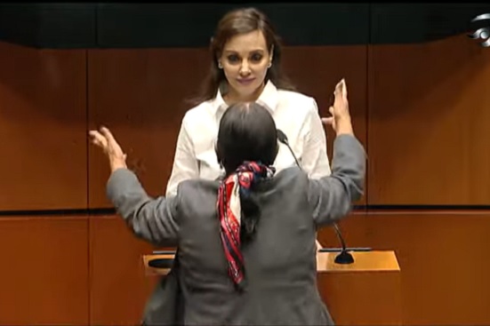 En una segunda intervención de Lilly Téllez, la morenista Lucía Trasviña se le paró enfrente del pódium para reclamarle respeto y exigir que no llame a los senadores “hienas ni corruptos”; no obstante, la respuesta fue: “Tú eres una corrupta”. Acción que provocó que su compañera de bancada, Xitlali Hernández la conminara ignorar los insultos y regresar a su escaño.