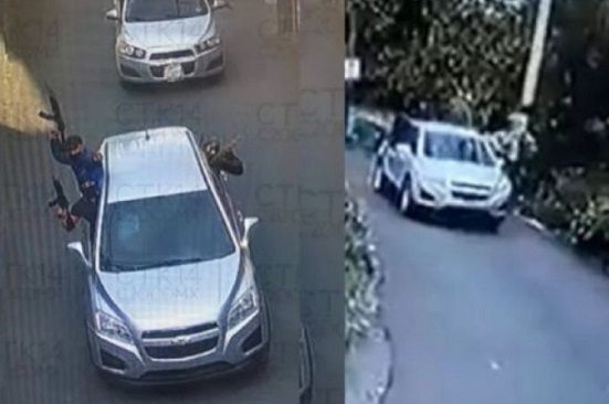 En las imágenes se observa a varios sujetos asomados por las ventanas de los autos mostrando rifles y armas de alto poder.