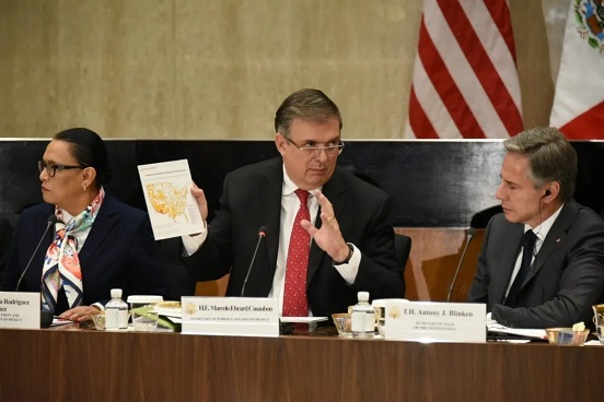 “Tenemos, por primera vez en años, una reducción en la tasa de homicidios, más o menos del 9.2% (…) se han logrado detener 5 toneladas de sustancias y precursores químicos, incluyendo fentanilo. 154 toneladas de metanfetaminas, es, casi que le diéramos una dosis de metanfetaminas a cada persona en México de más de 50 años. 94 toneladas de cocaína, con una acción muy destacada en la intercepción en el mar y por aire de cocaína”, dijo en la apertura del diálogo realizado en el Departamento de Estado.