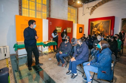 Con la participación del Museo de Historia Natural de la UAEMéx, que aportó materiales para el tacto, y la Fundación “Vemos con el corazón”, encargada de hacer la traducción al Braille para las cédulas que contienen la descripción de las pinturas, el primer recorrido se realizó para un grupo de personas invidentes perteneciente a la Fundación, quienes vivieron la primera experiencia multisensorial.