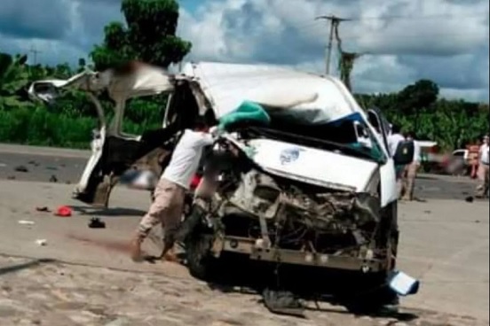 Protección Civil estatal informó que el accidente se produjo luego de que el colectivo -marca Nissan Urvan de la ruta de transporte público Costeños- en el que viajaban las personas se impactó en la plataforma de un camión tipo tráiler.