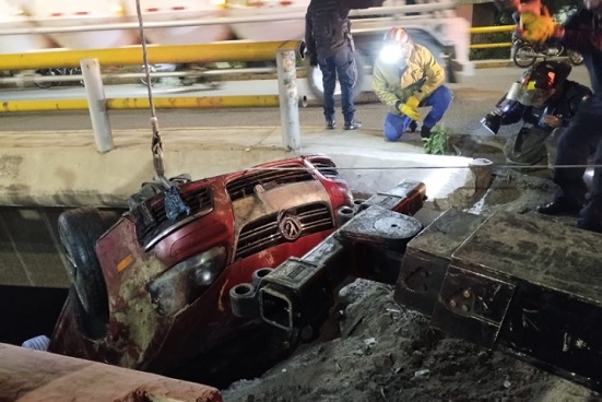 A través redes, un video difundido por el periodista de Grupo Fórmula, Polo Espejel, se observa una grúa sacar el coche del canal.