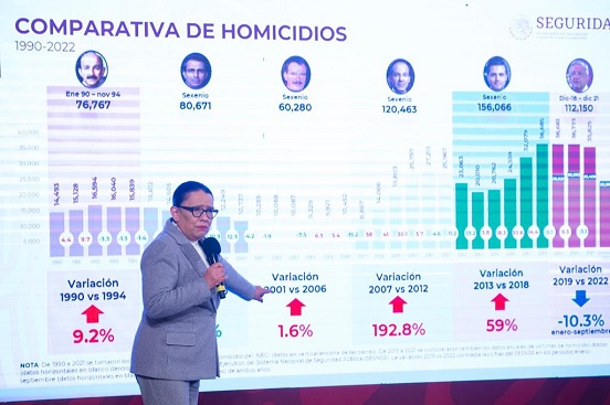 Con el dato de reducción sostenida de 27% en delitos del fuero federal, con énfasis en el -13.9% en el homicidio doloso, el más bajo en los últimos 6 años. Este jueves la secretaría de Seguridad y Protección Ciudadana (SSSPC), Rosa ICela Rodríguez comenzó el informe mensual de seguridad.